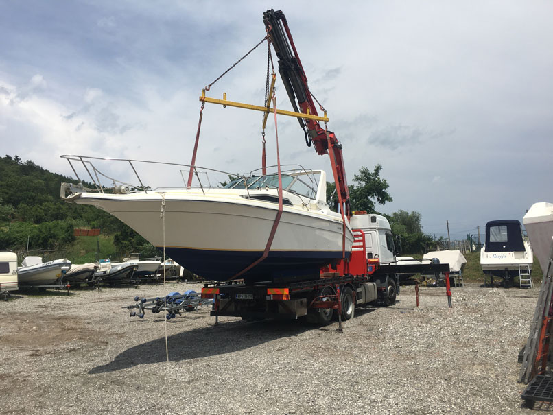 Poskrbimo tudi za dvig/spust plovila iz oz. v vodo, ter tudi prevoz plovil do 9m iz katere koli lokacije na željeno destinacijo po Sloveniji in tujini.